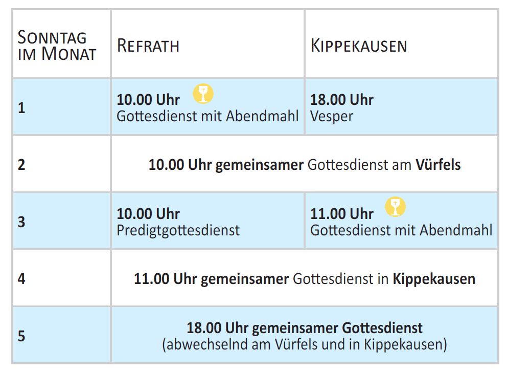 Das Presbyterium hat daher beschlossen, dass am Vürfels und in Kippekausen ab