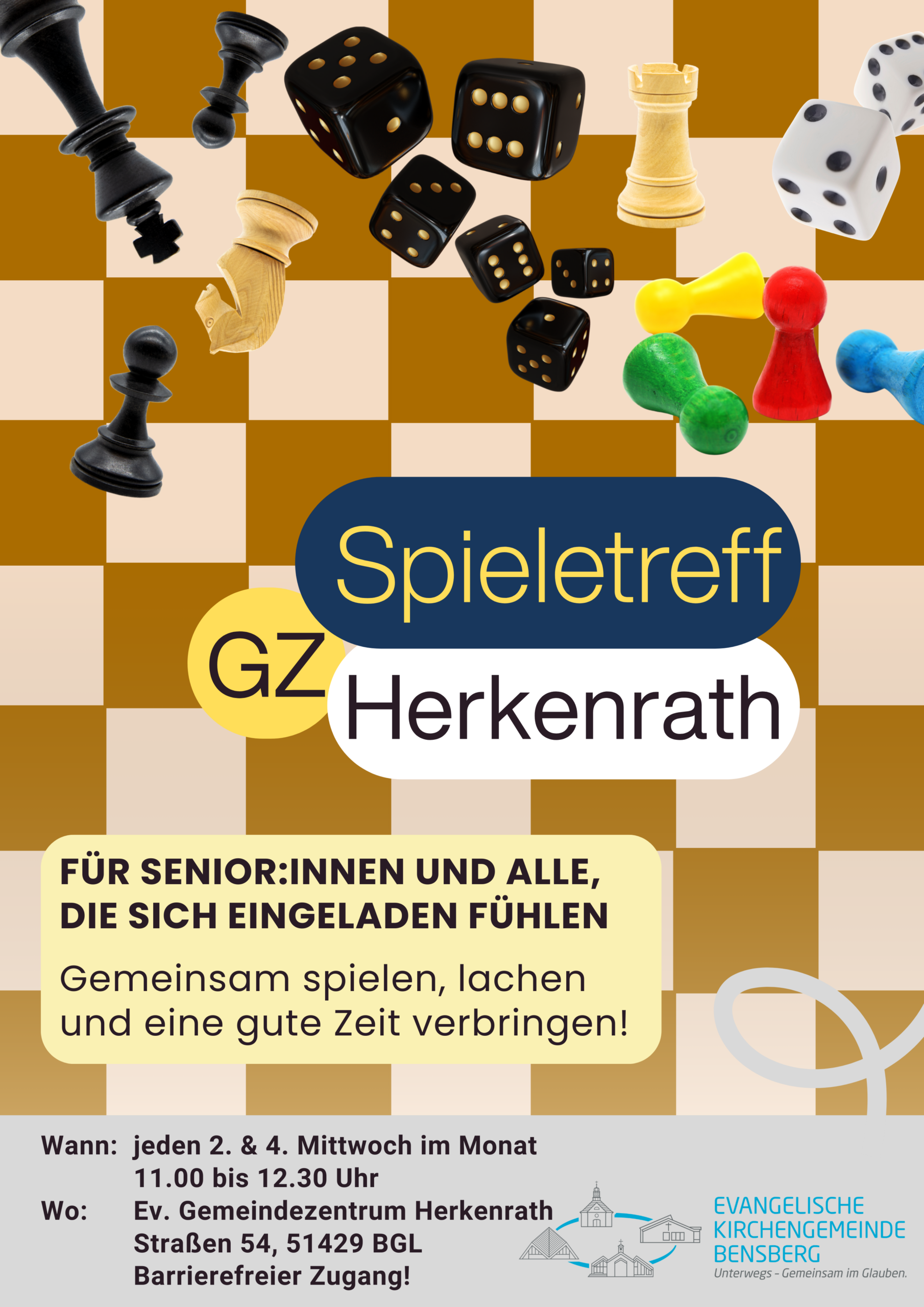 Herzliche Einladung zum Spieletreff im GZ Herkenrath: Jeden zweiten und vierten Mittwoch im Monat wollen wir ab 11.00 Uhr mit allen, die sich eingeladen fühlen, spielen, lachen und eine gute Zeit verbringen. Es steht eine Auswahl an interessanten Brett- und Kartenspielen zur Verfügung, eigene Spiele können mitgebracht werden. Anschließend gibt es einen Mittagssnack. Komm vorbei, lerne neue Leute kennen und spiel mit!